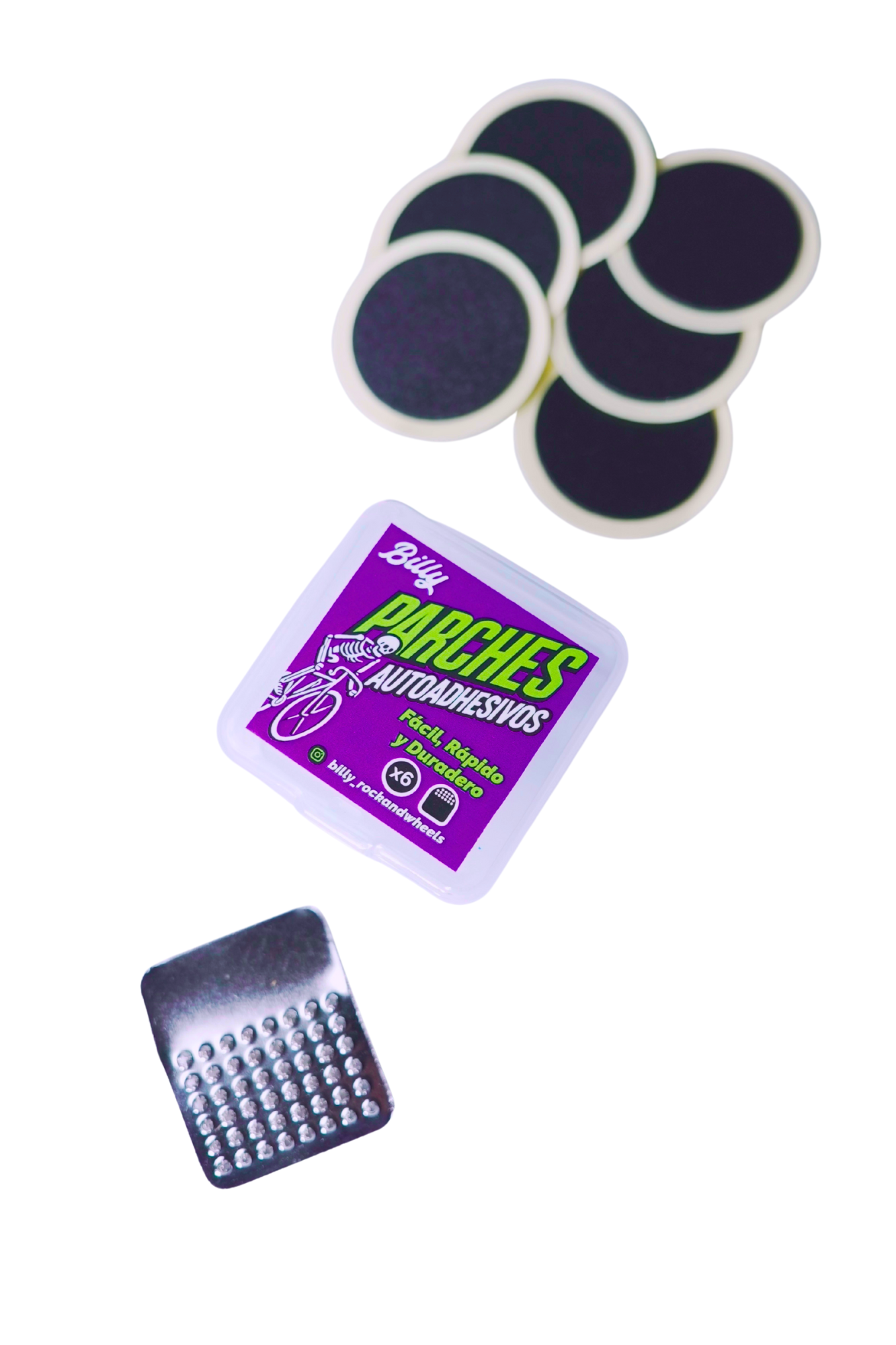 La solución más rápida y práctica 🚴♂️💨 para esos pinchazos inesperados. Los Parches Autoadhesivos Billy vienen listos con su pegamento incorporado, no necesitas nada más para volver al camino en segundos.