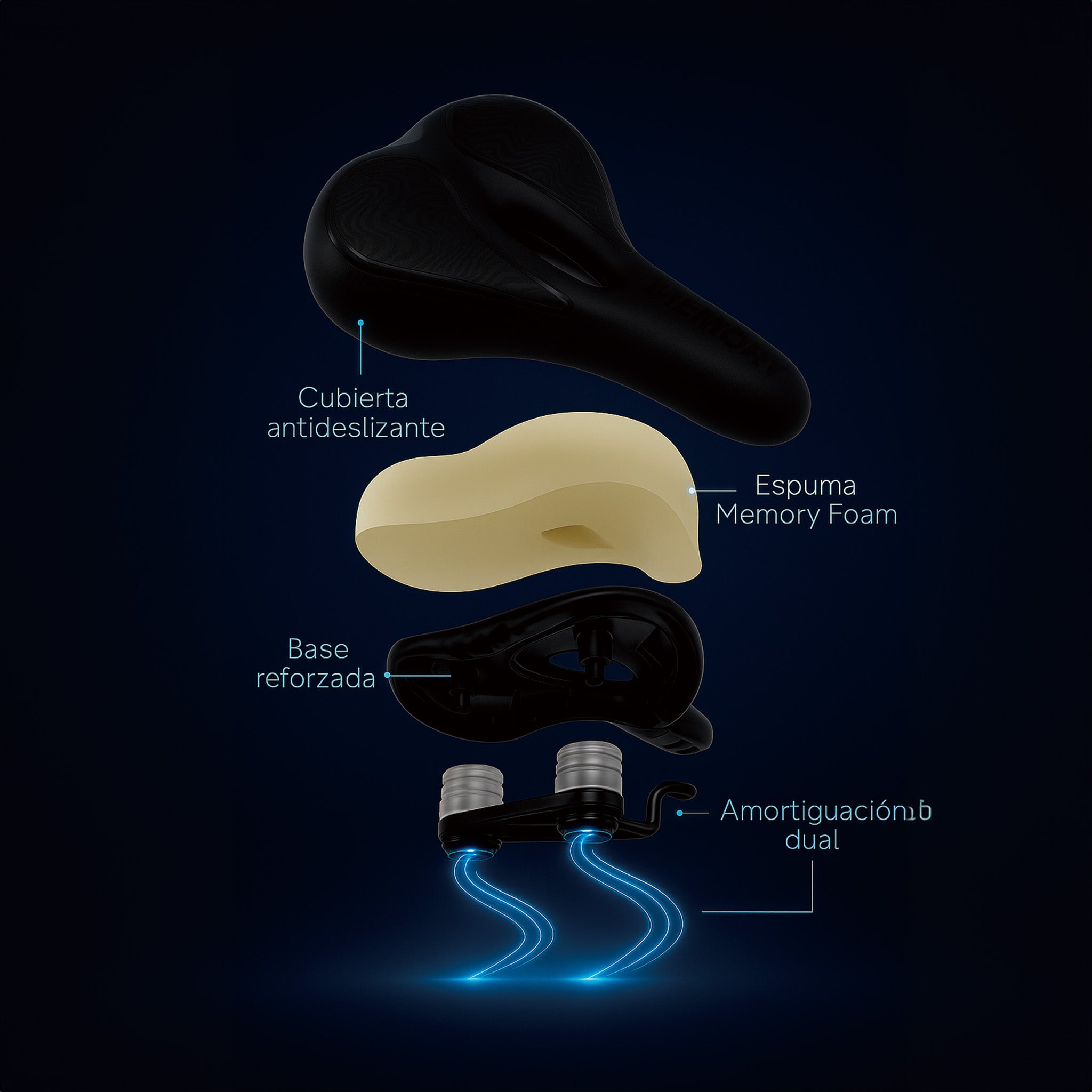 Diseñado para ofrecer una experiencia de pedaleo cómoda y estable, ideal para rutas intensas o paseos relajados. Disfruta de la innovadora tecnología de Memory Foam y de una estructura que se adapta perfectamente a tu cuerpo, brindando máxima amortiguación y absorción de vibraciones.